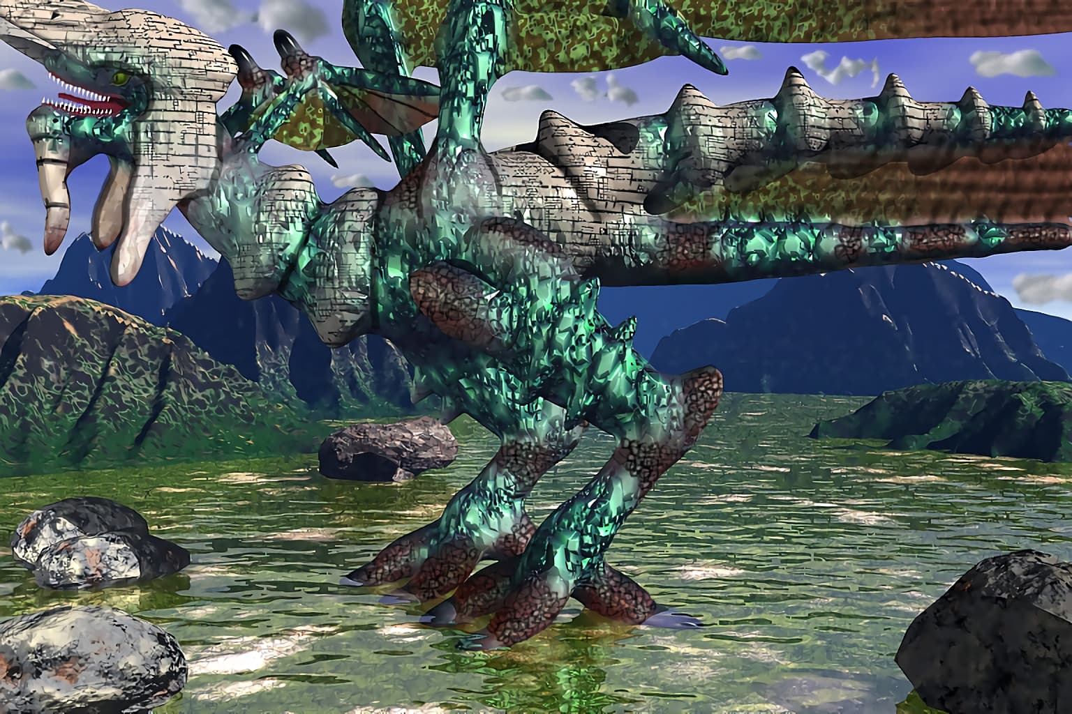 Panzer Dragoon fan art created over twenty years ago. Made with Bryce 5 and Paint.