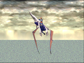 Solo Wing: In Panzer Dragoon Zwei, Lagi took a year to grow up. However after he entered battle he began to grow at lot faster. Lagi grew relatively slowly before he and Lundi set off on their quest, but once the pursuit of Shelcoof had begun he grew into the Blue Dragon in under two months. It seems that destroying enemies may have caused Lagi to grow somehow. But even taking the dragon’s fast growth rate into consideration, when would the Sky Rider have had the opportunity to raise a coolia pup into the full grown Blue Dragon? If he had defeated hordes of Sestren’s monsters to “level up” his dragon, surely Sestren would have recorded these events and shown them in the memory orbs at the end of Panzer Dragoon Saga. Such a tale would be far from unimportant in terms of the story of the Heresy Dragon. Instead, the Sky Rider’s part to play is portrayed as insignificant and almost irrelevant.